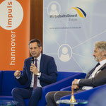 Peter Karst, Hauptgeschäftsführer der Handwerkskammer, anschloss, der als erster auf dem „blauen Sofa“ neben Lies Platz nahm. Moderiert von WirtschaftsDienst-Herausgeber Andreas